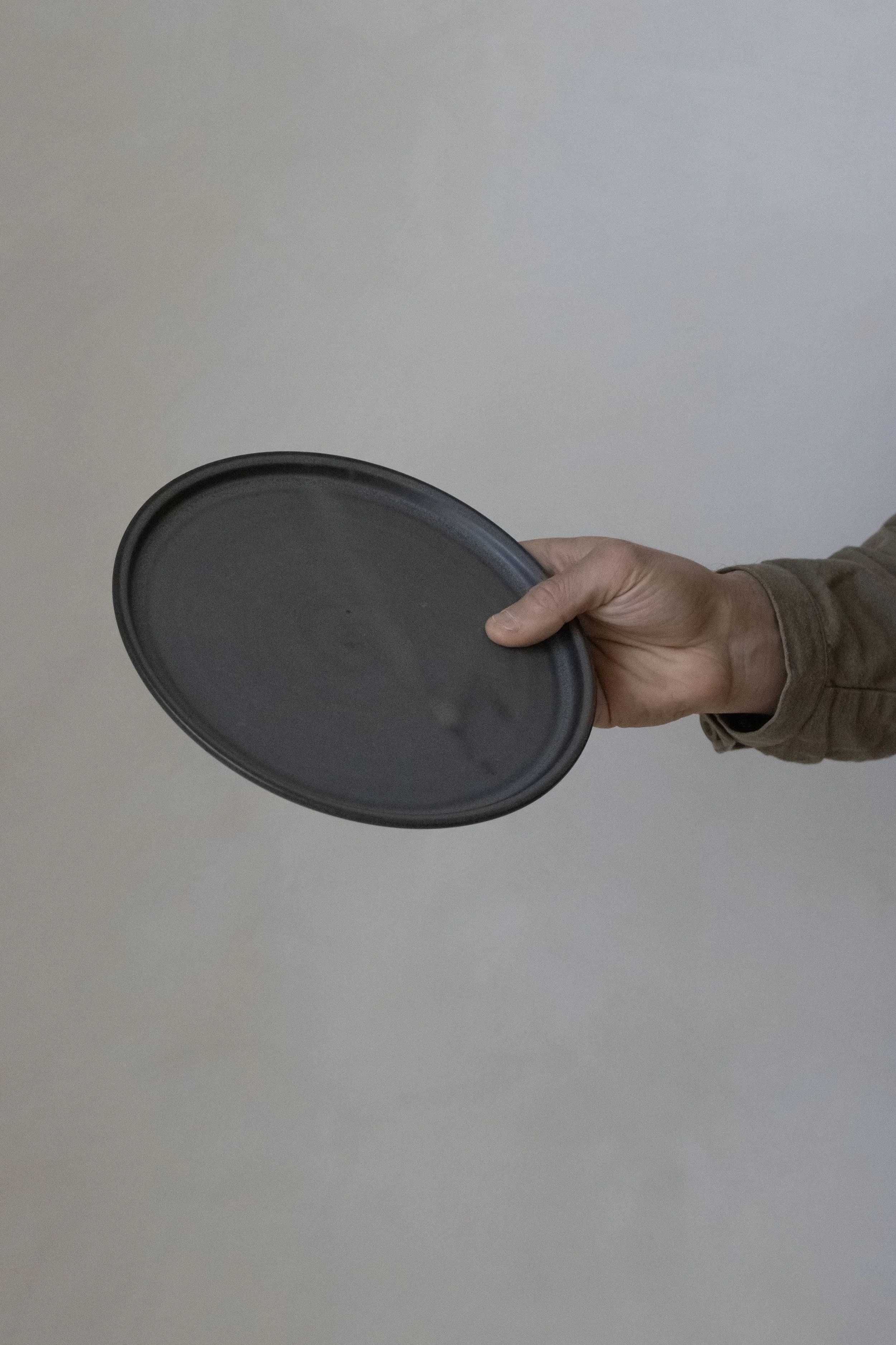 Medium size plate made with grey stoneware in moss green glaze